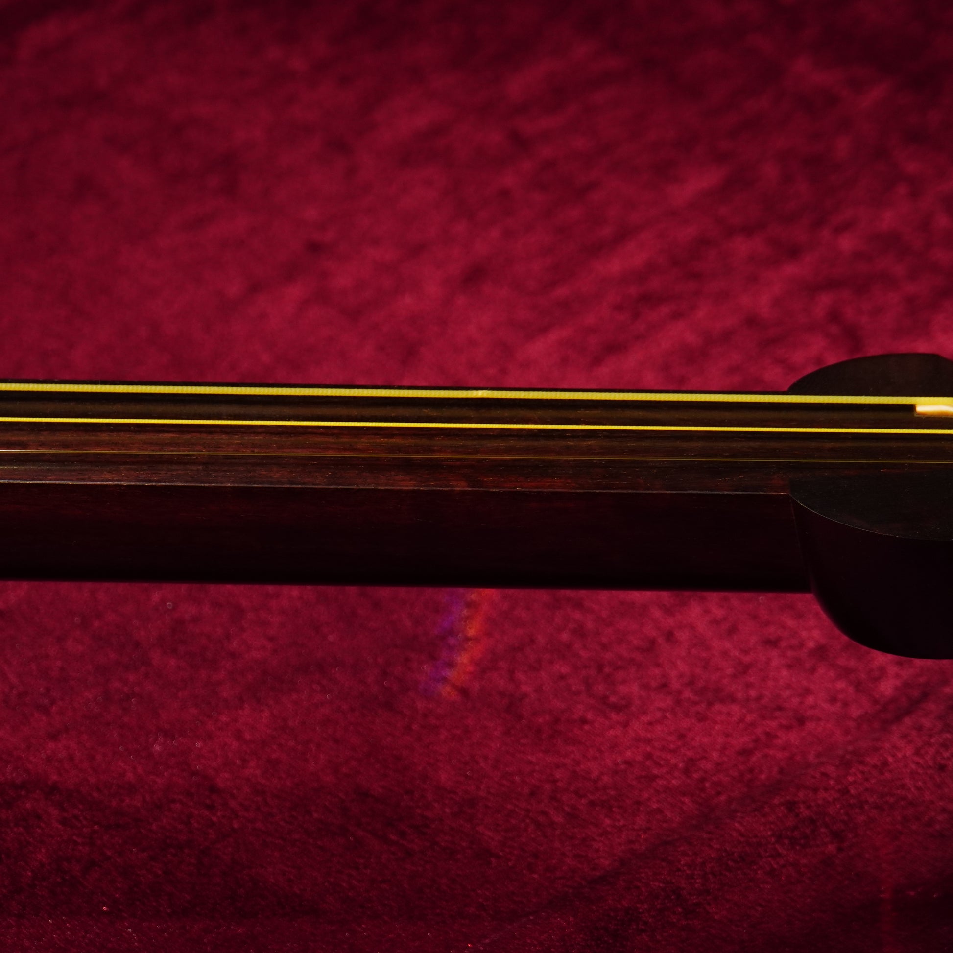 This exceptional Tsugaru shamisen, crafted from premium kōki (red sandalwood) and built in an elegant three-piece construction, represents the pinnacle of professional craftsmanship and artistry.