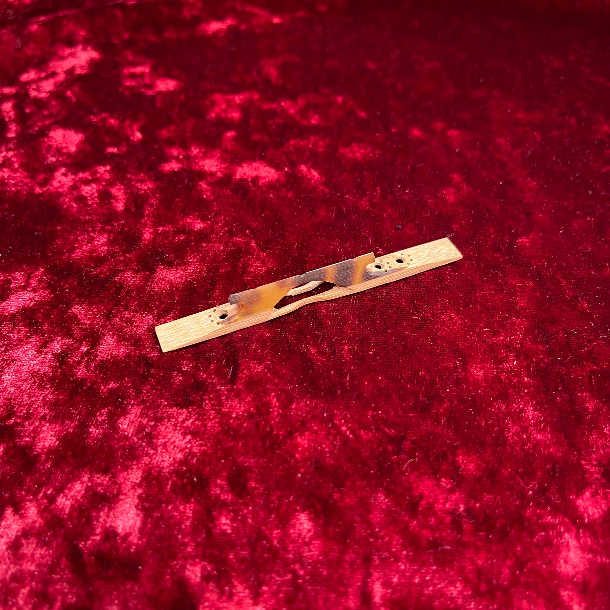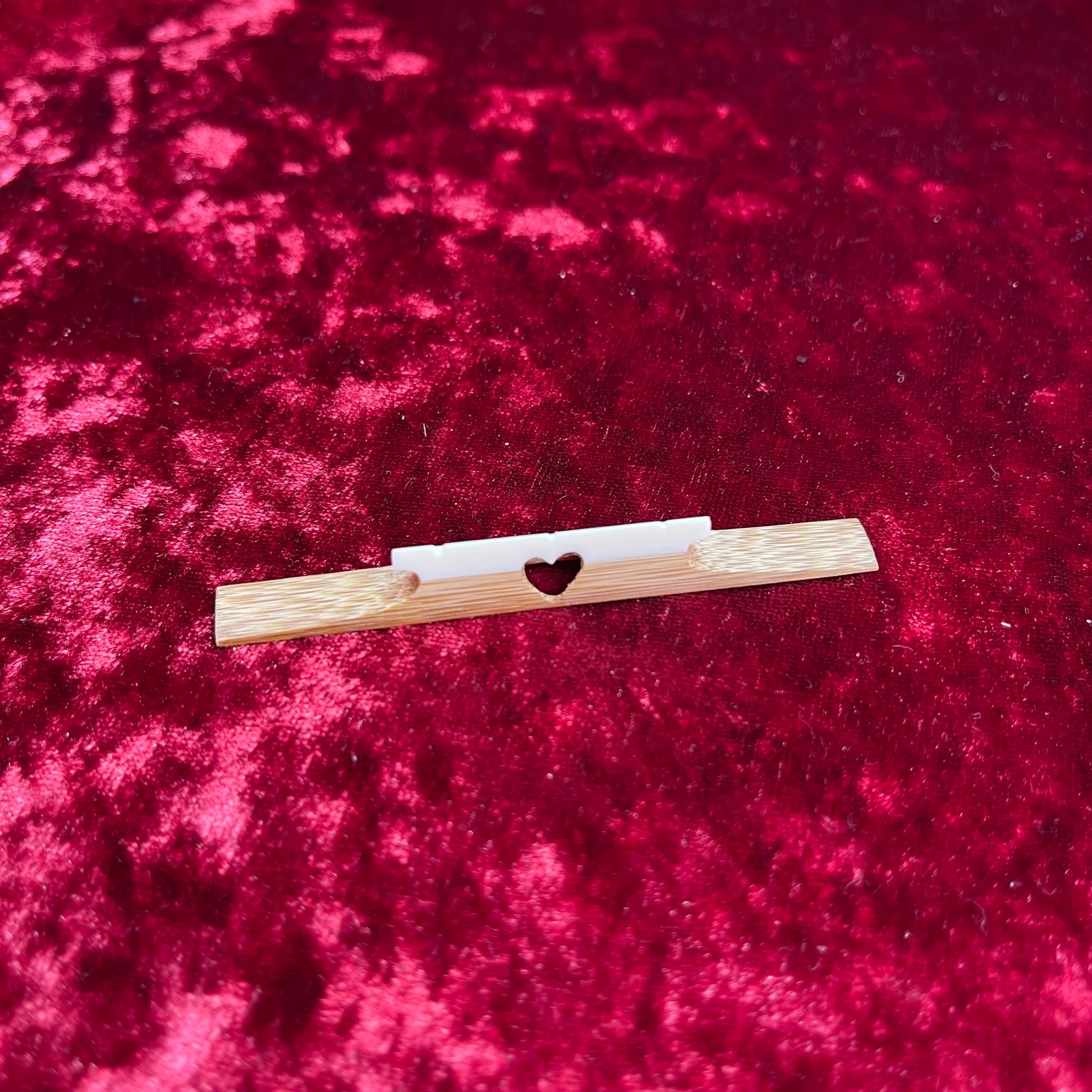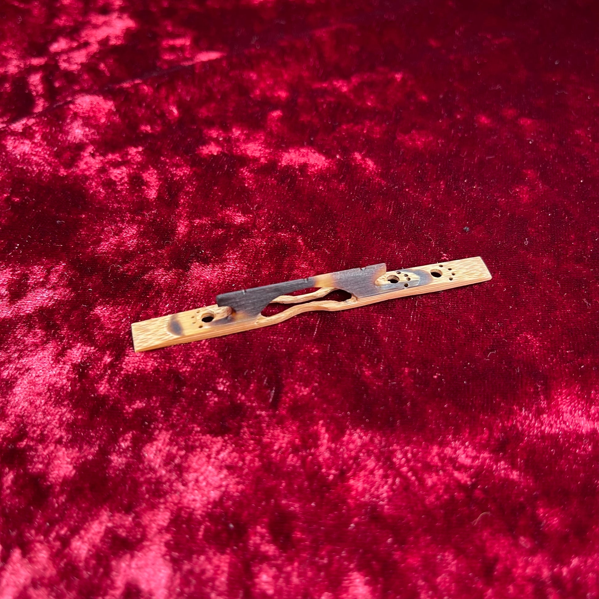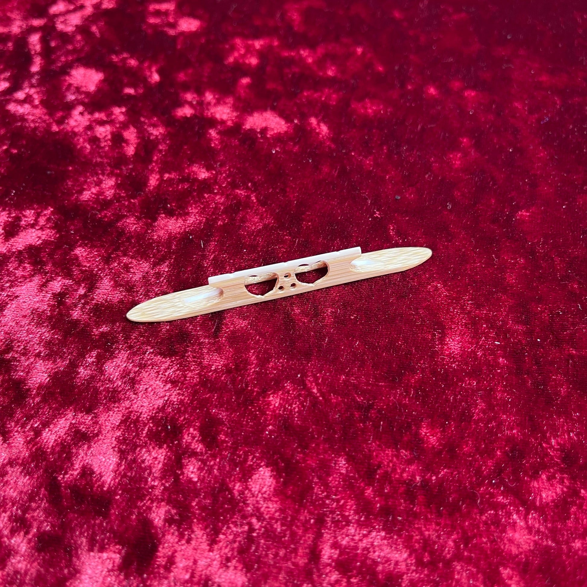 This original shamisen bridge features a fun, eye-catching design that stands out while still delivering dependable musical performance.