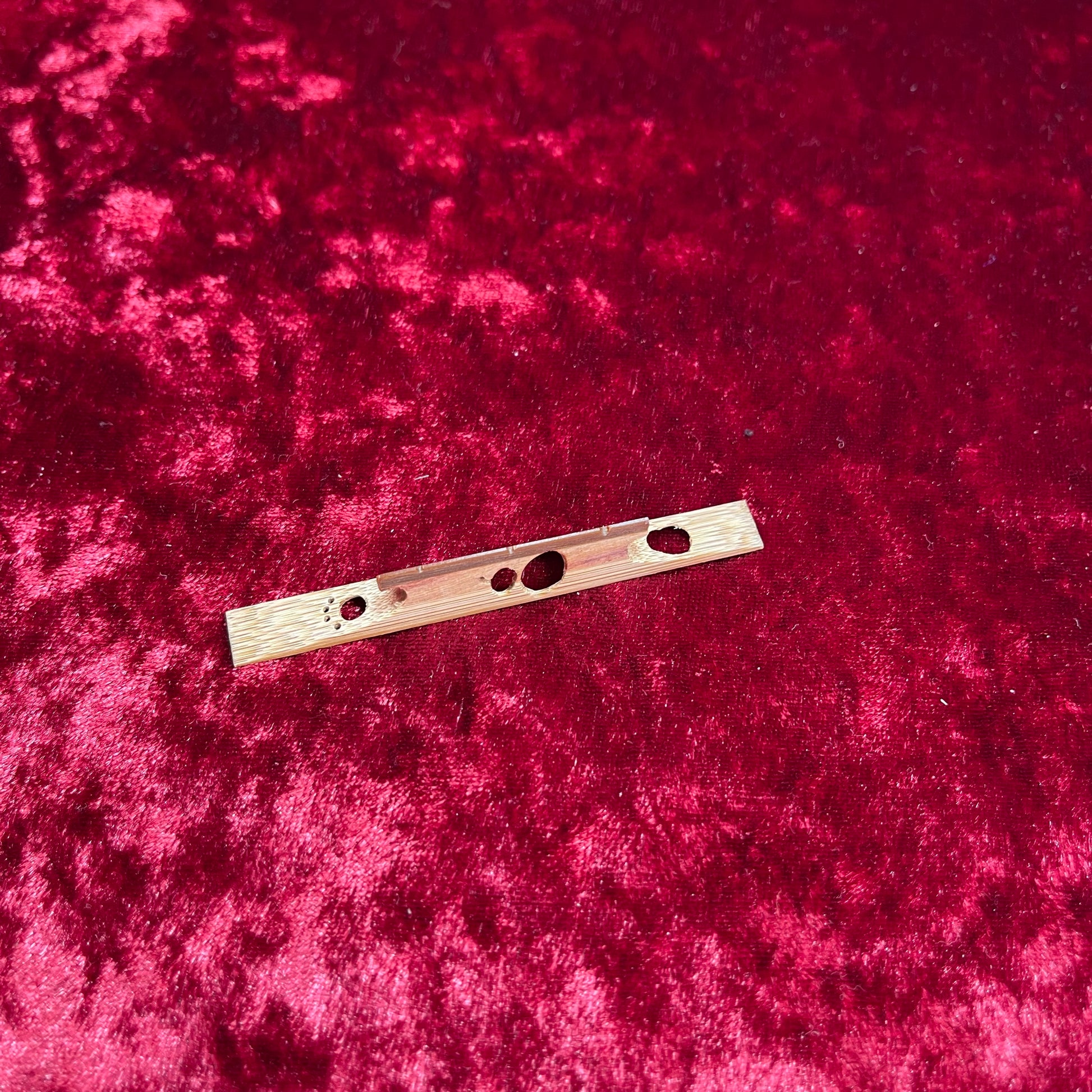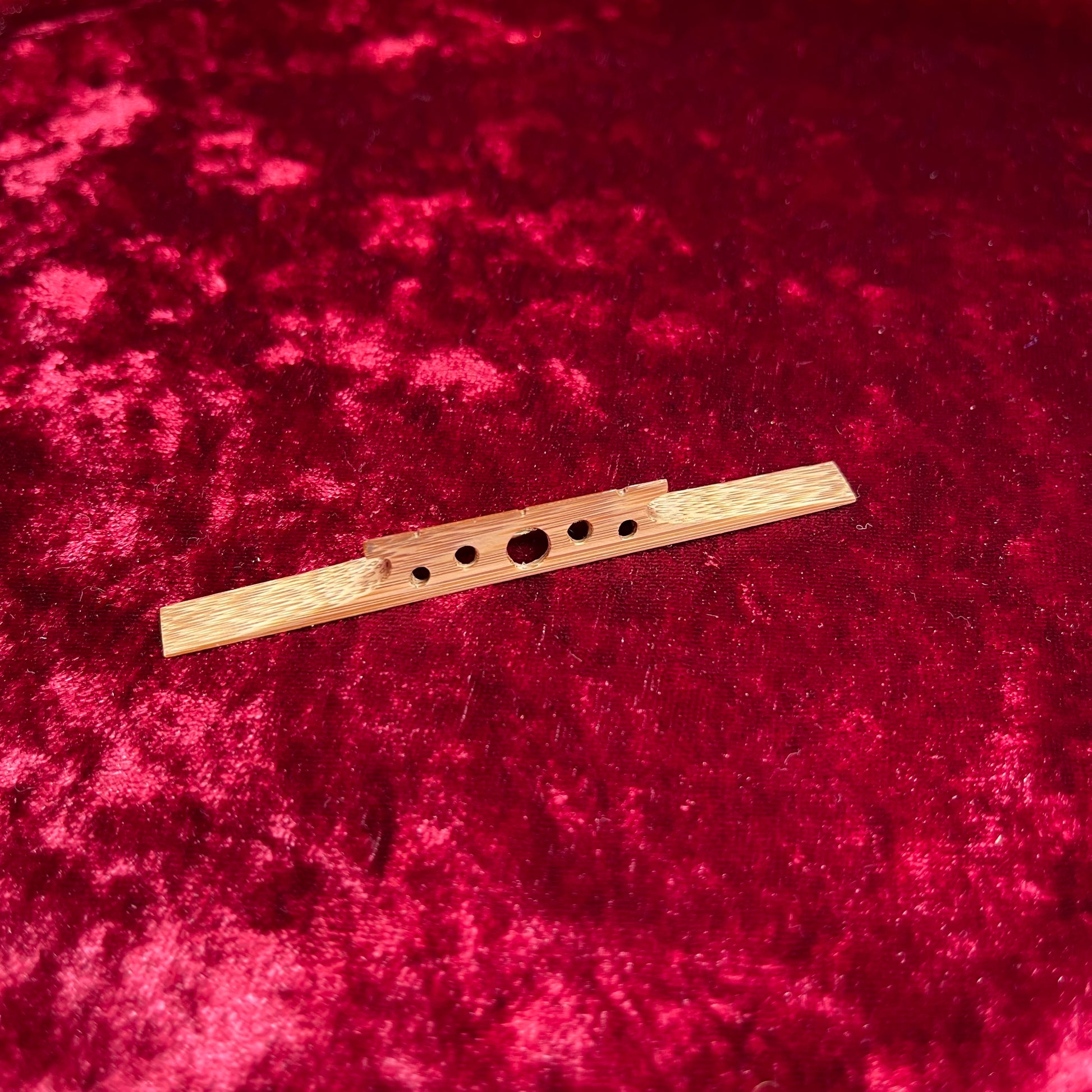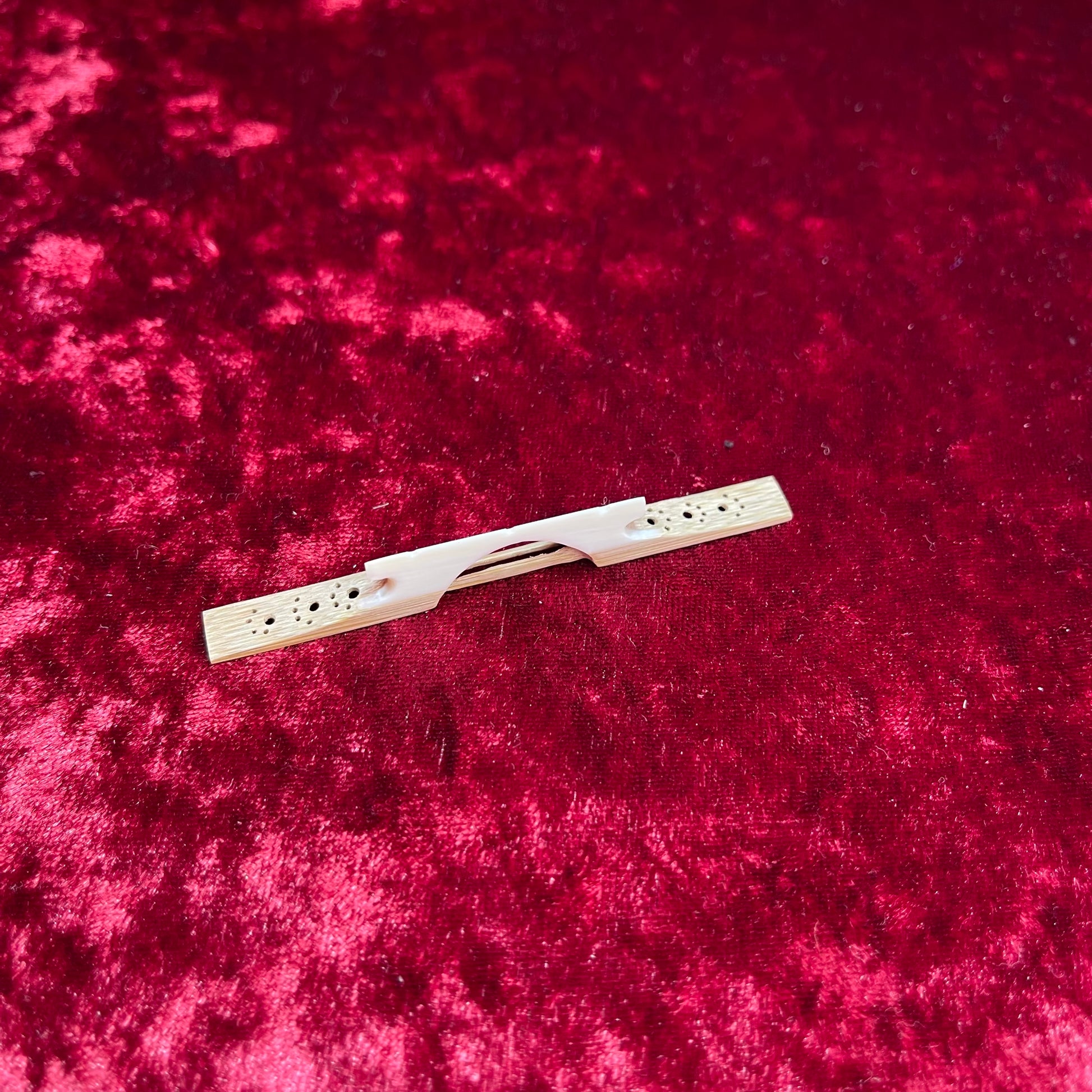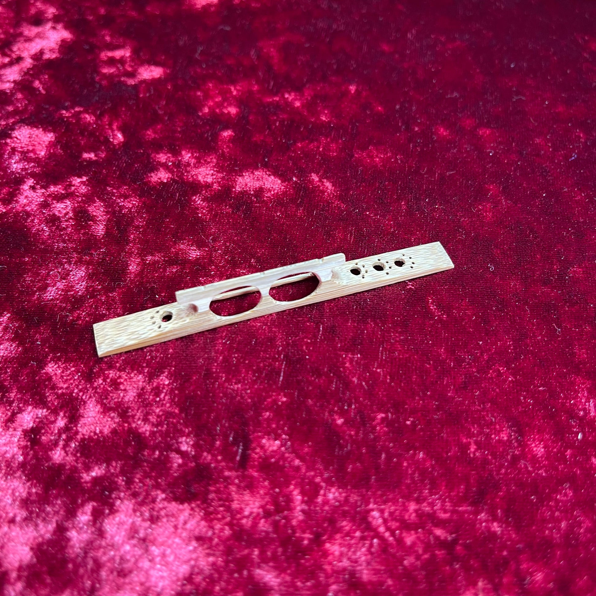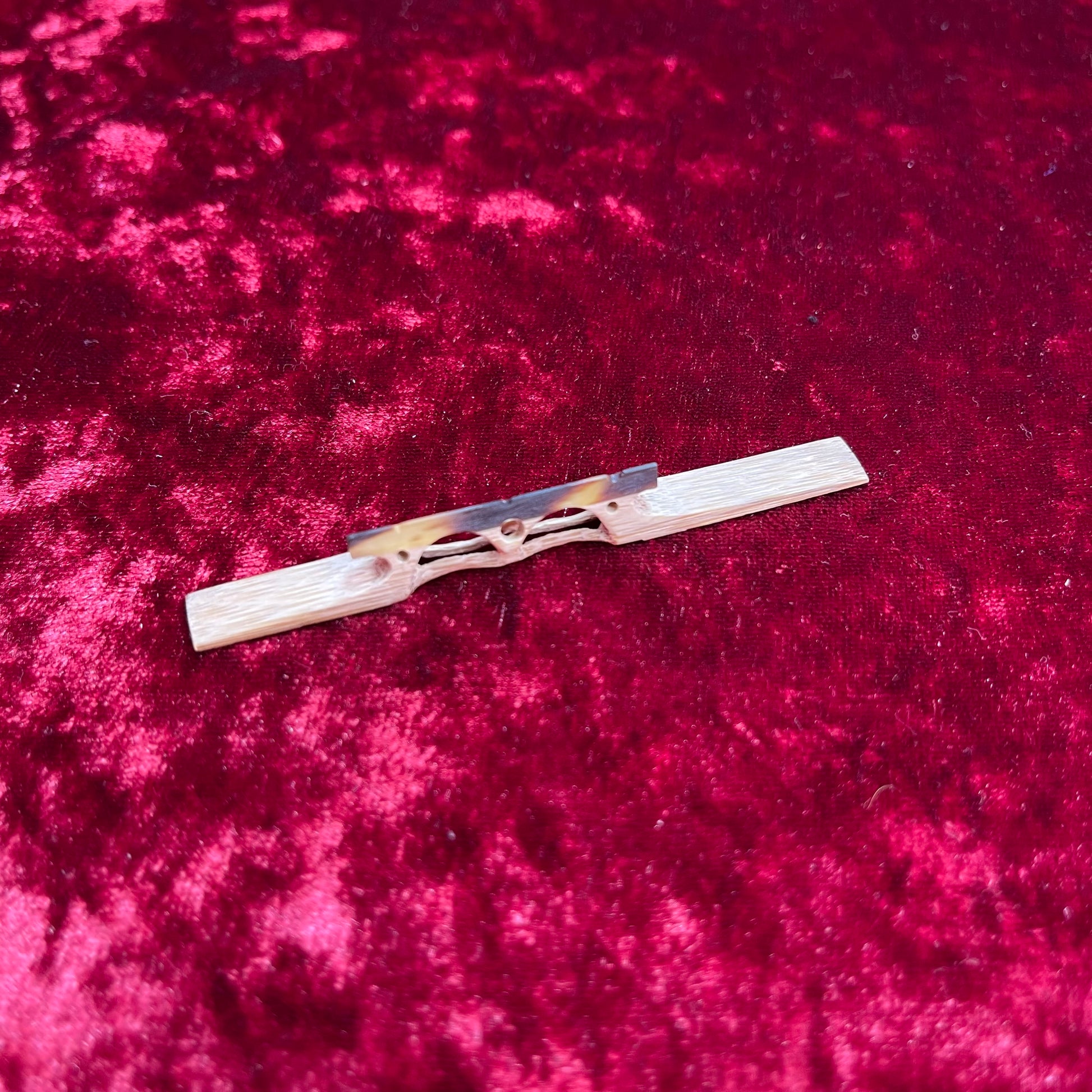 This original shamisen bridge features a fun, eye-catching design that stands out while still delivering dependable musical performance.